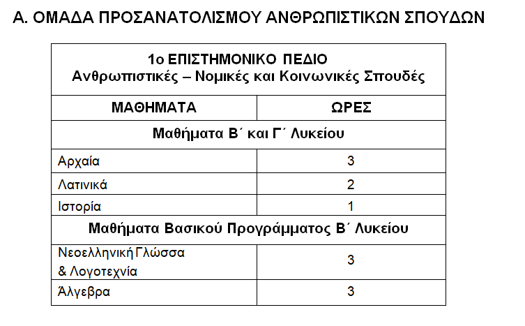 1ο: Ανθρωπιστικές, Νομικές και Κοινωνικές Επιστήμες