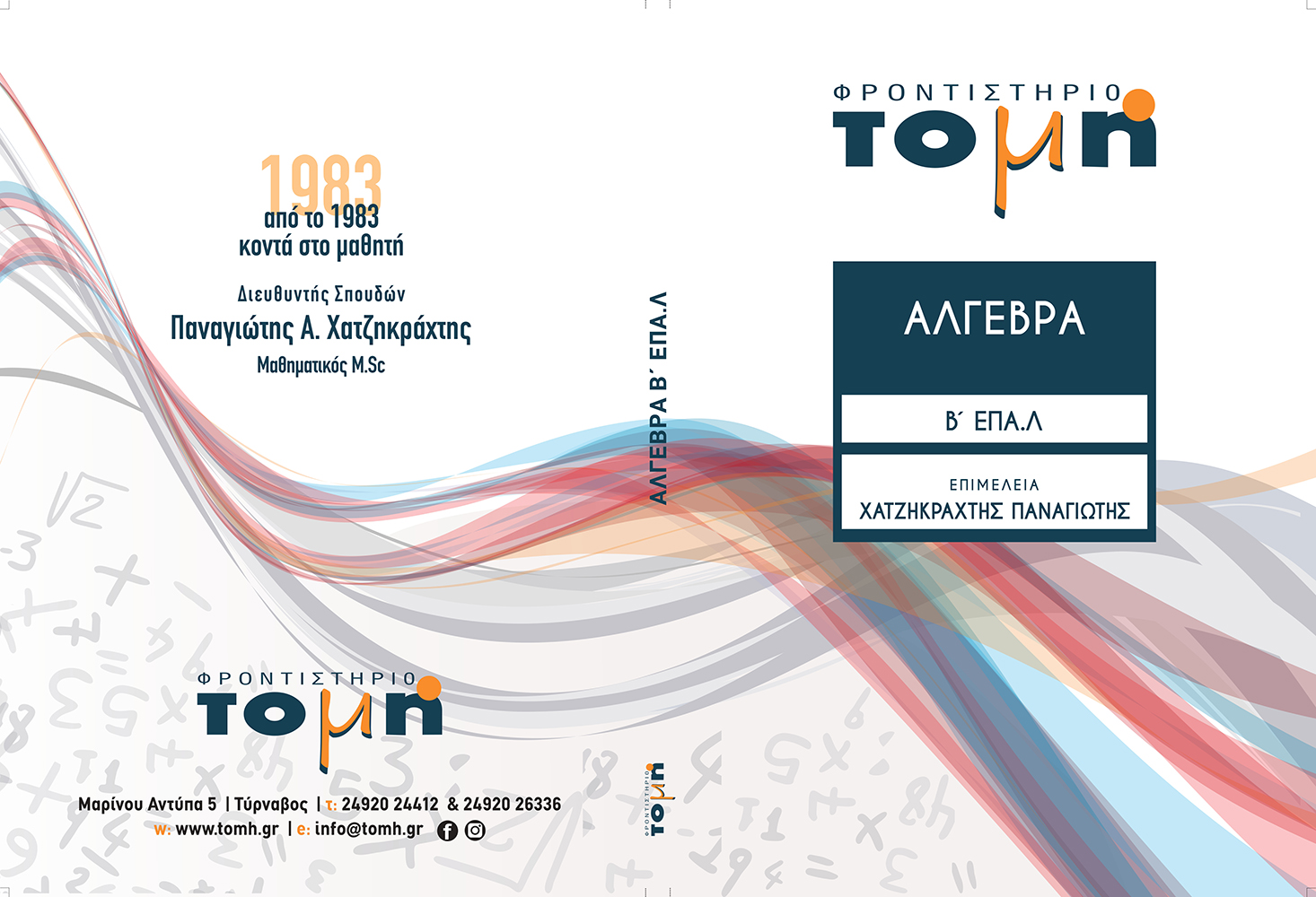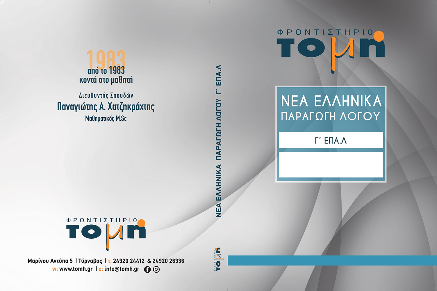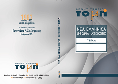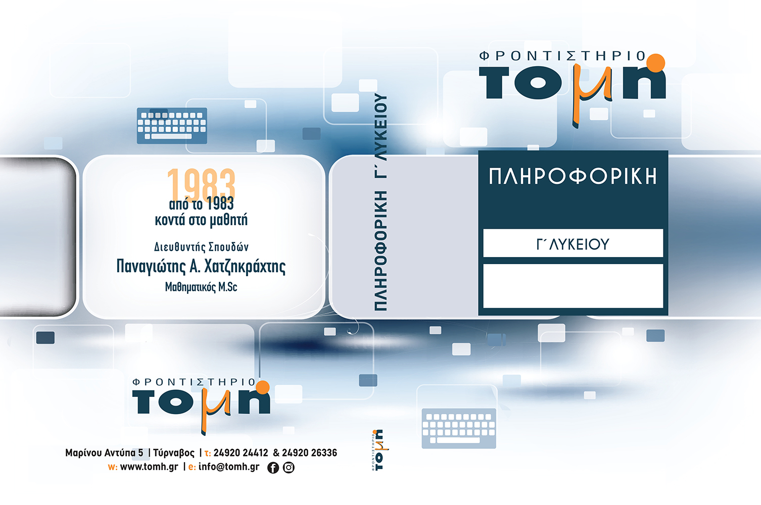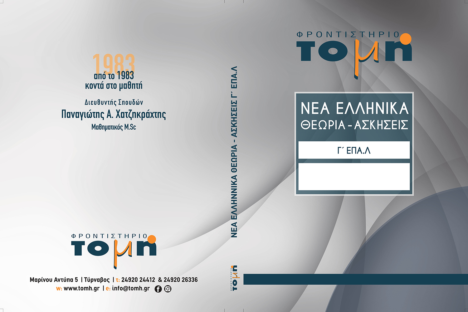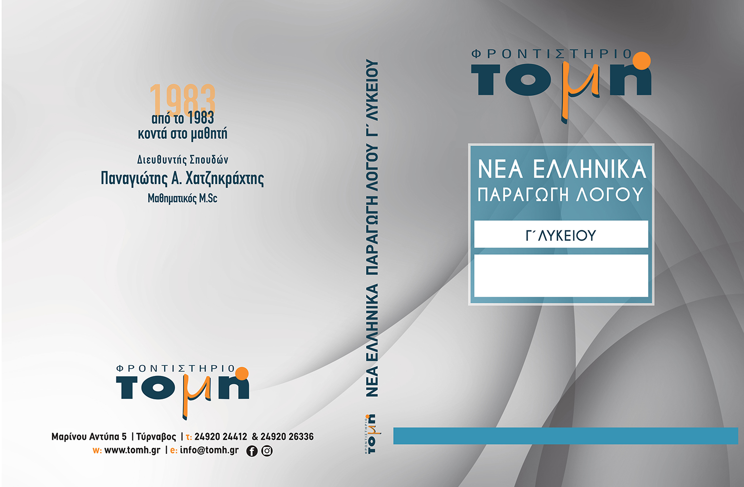 Το φροντιστήριο «ΤΟΜΗ» εκδίδει βιβλία και βοηθήματα σε όλα τα μαθήματα και διανέμονται δωρεάν στους μαθητές-τριες του. Αποτελούν βασικό «εργαλείο» για την καλύτερη αφομοίωση της ύλης και είναι προσαρμοσμένα στις απαιτήσεις της διδακτέας – εξεταστέας ύλης.